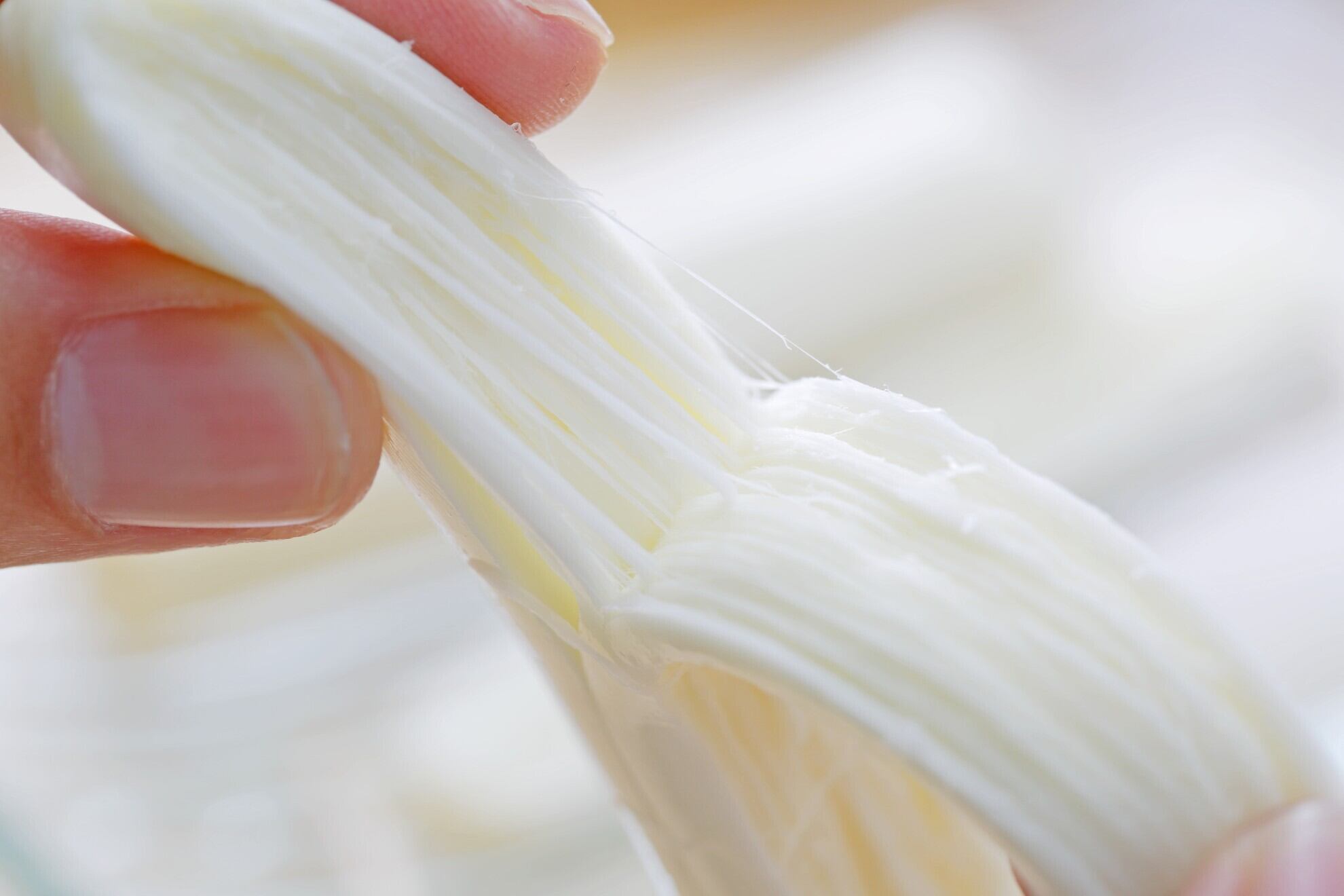 柔らかく、ミルクの風味が広がるストリングチーズです。